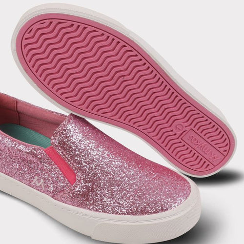 Simple, stylish, and fun—the Piper Kids' slip-ons are perfect for any occasion. Featuring a playful pink glitter upper, they add a touch of sparkle to every step. Designed for easy wear, they're ideal for family vacations and adventures.